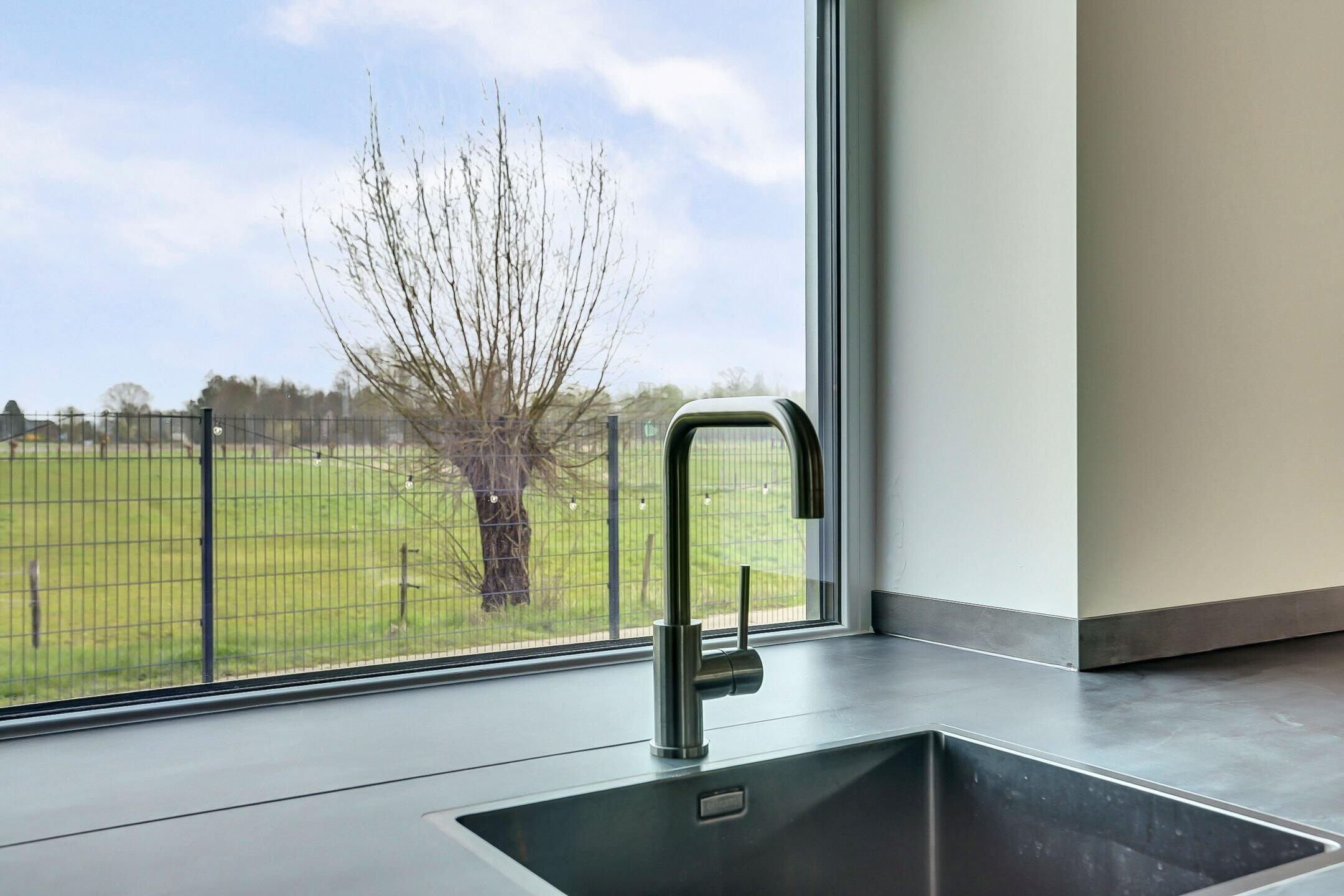 De tuin ligt aan de zijkant van de woning en door deze ligging geniet je hier optimaal van het weidse uitzicht over het aangrenzende natuurgebied. Een uitzicht dat blijvend vrij is en elk moment van de dag iets bijzonders te bieden heeft.