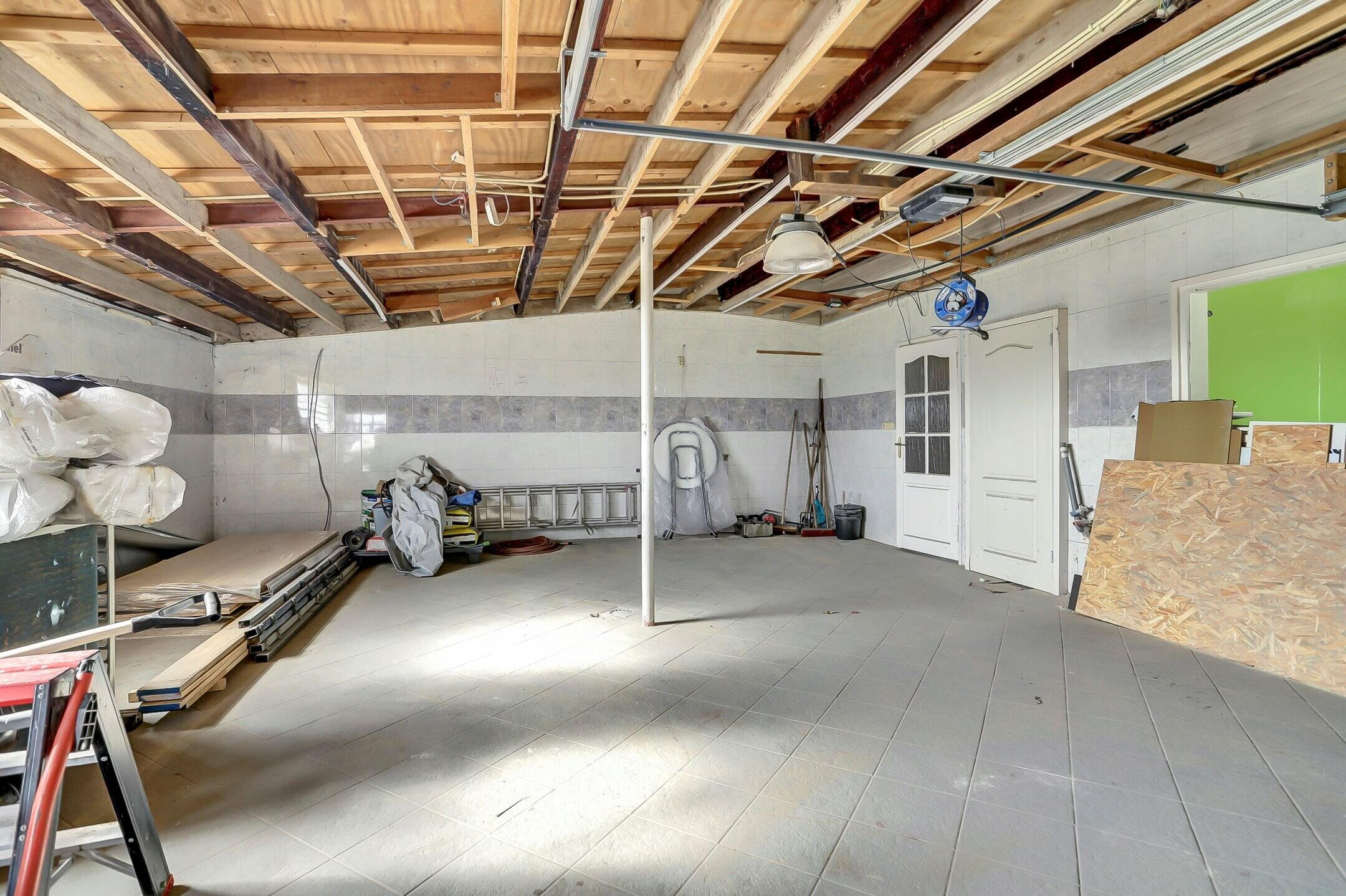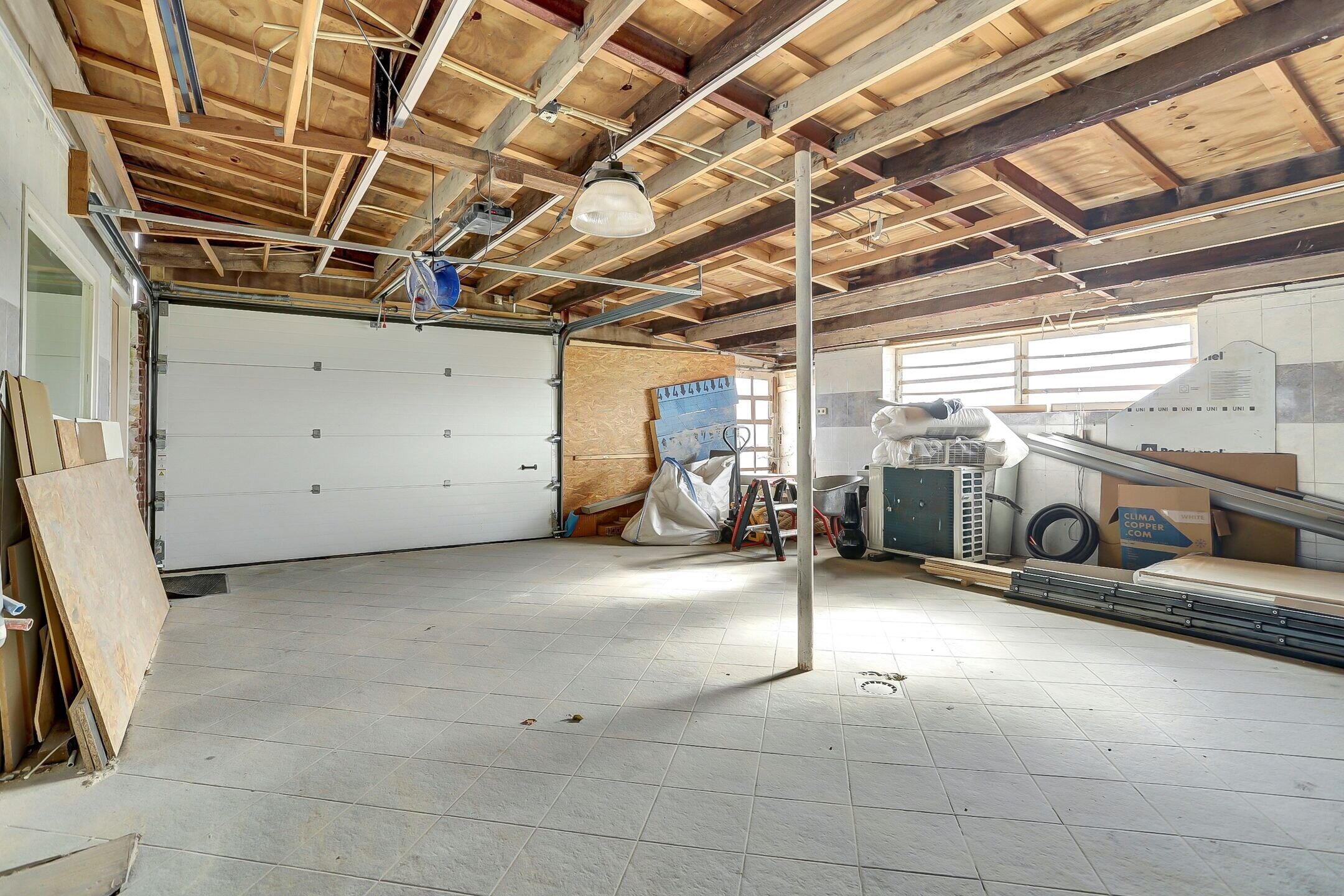 Achter op het perceel bevindt zich een ruime garage met een elektrisch bedienbare sectionaalpoort. Een ideale plek voor de hobbyist of voor het stallen van een auto, fietsen of andere machines. Extra praktisch is het recent geplaatste toilet in de garage.