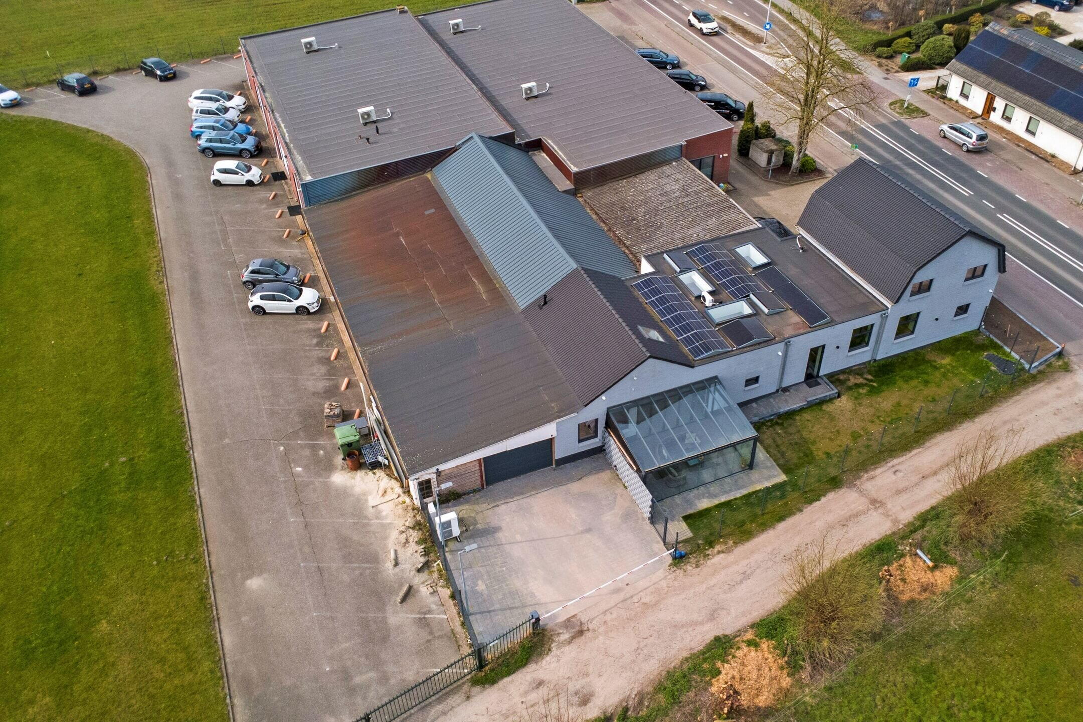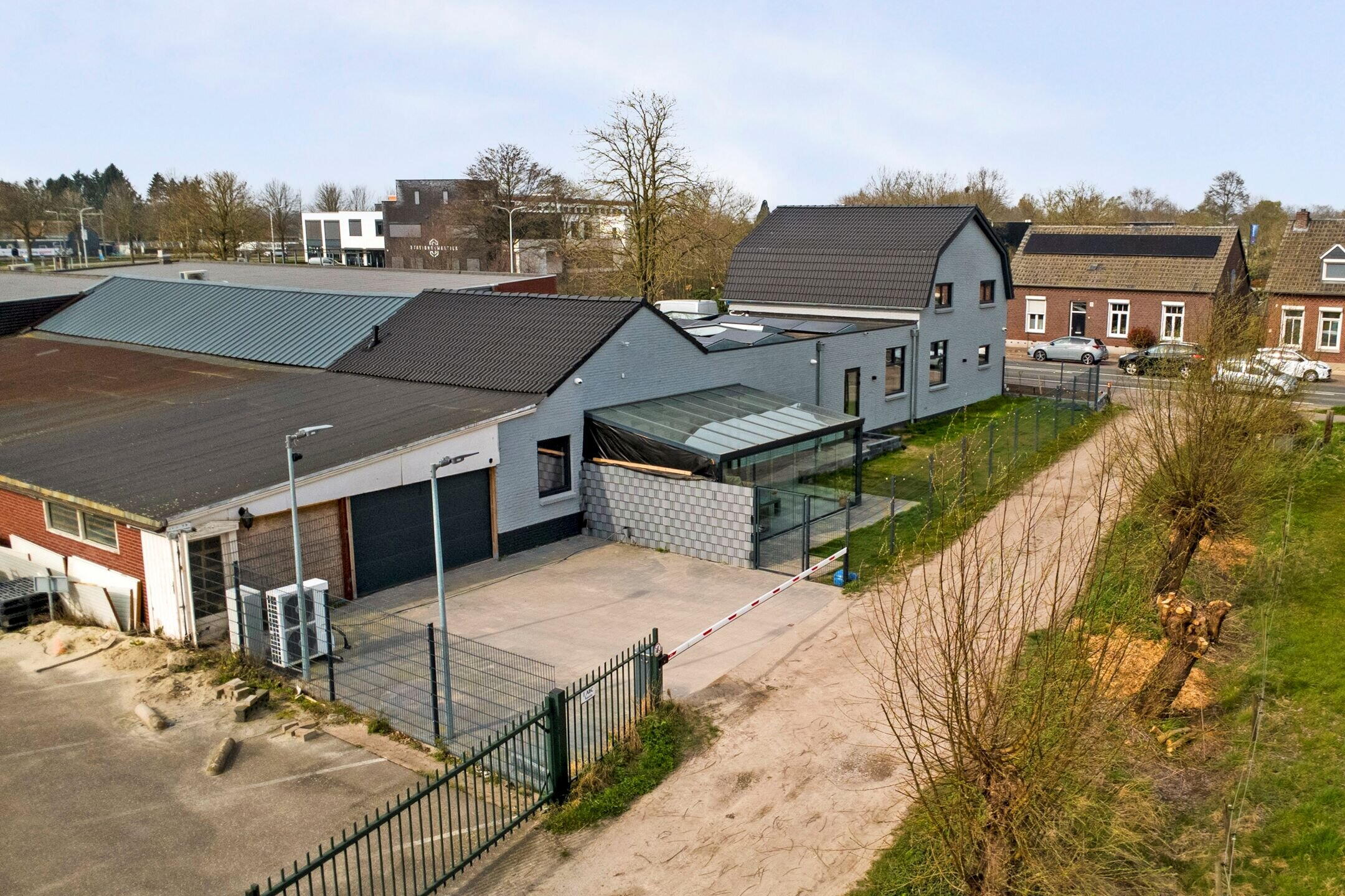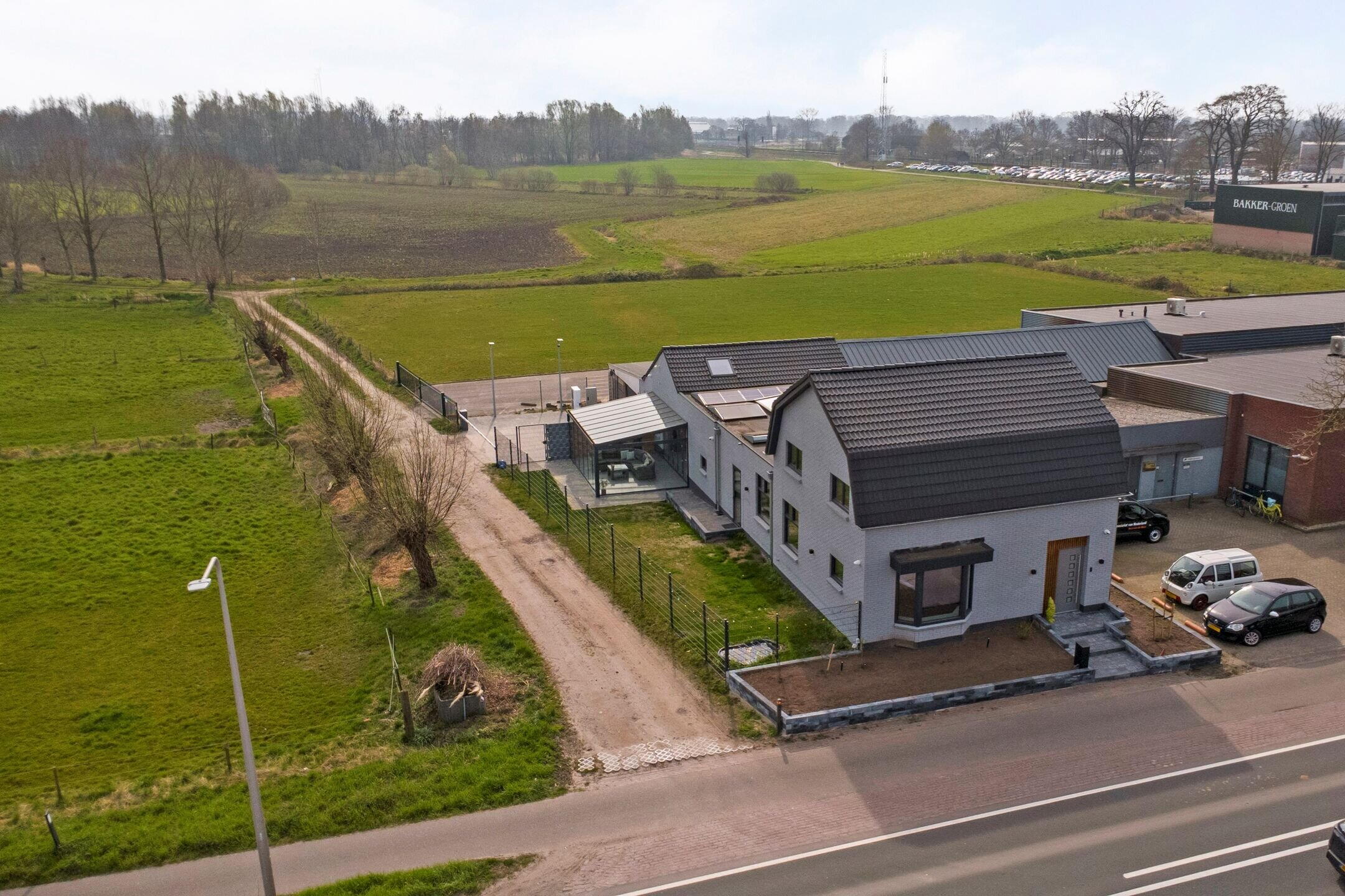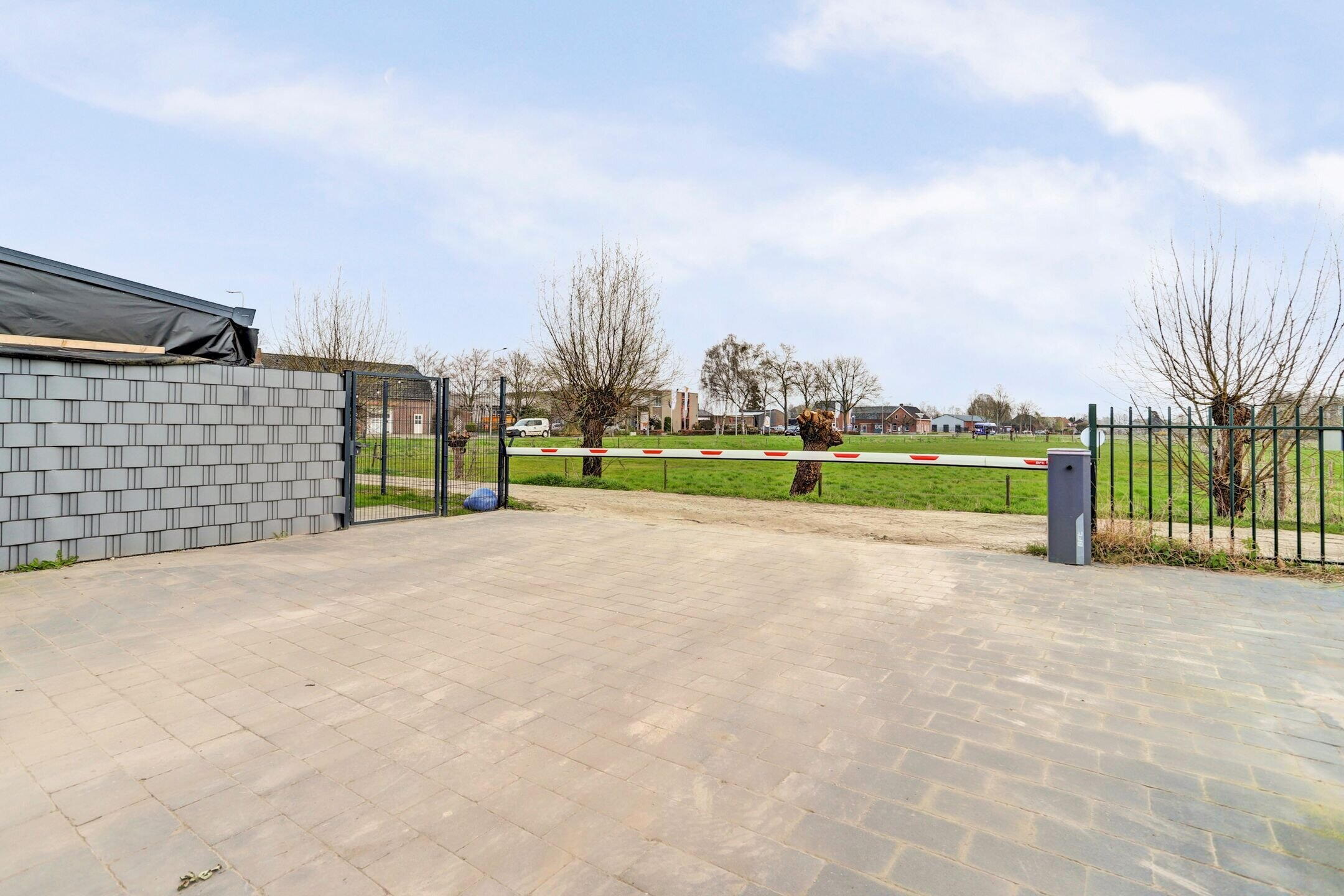 Voor de garage liggen meerdere parkeerplaatsen op eigen terrein, afgesloten met een elektrisch bedienbare slagboom. Ook aan de toekomst is gedacht: er is al een stroomvoorziening aangelegd voor het plaatsen van een laadpaal.
