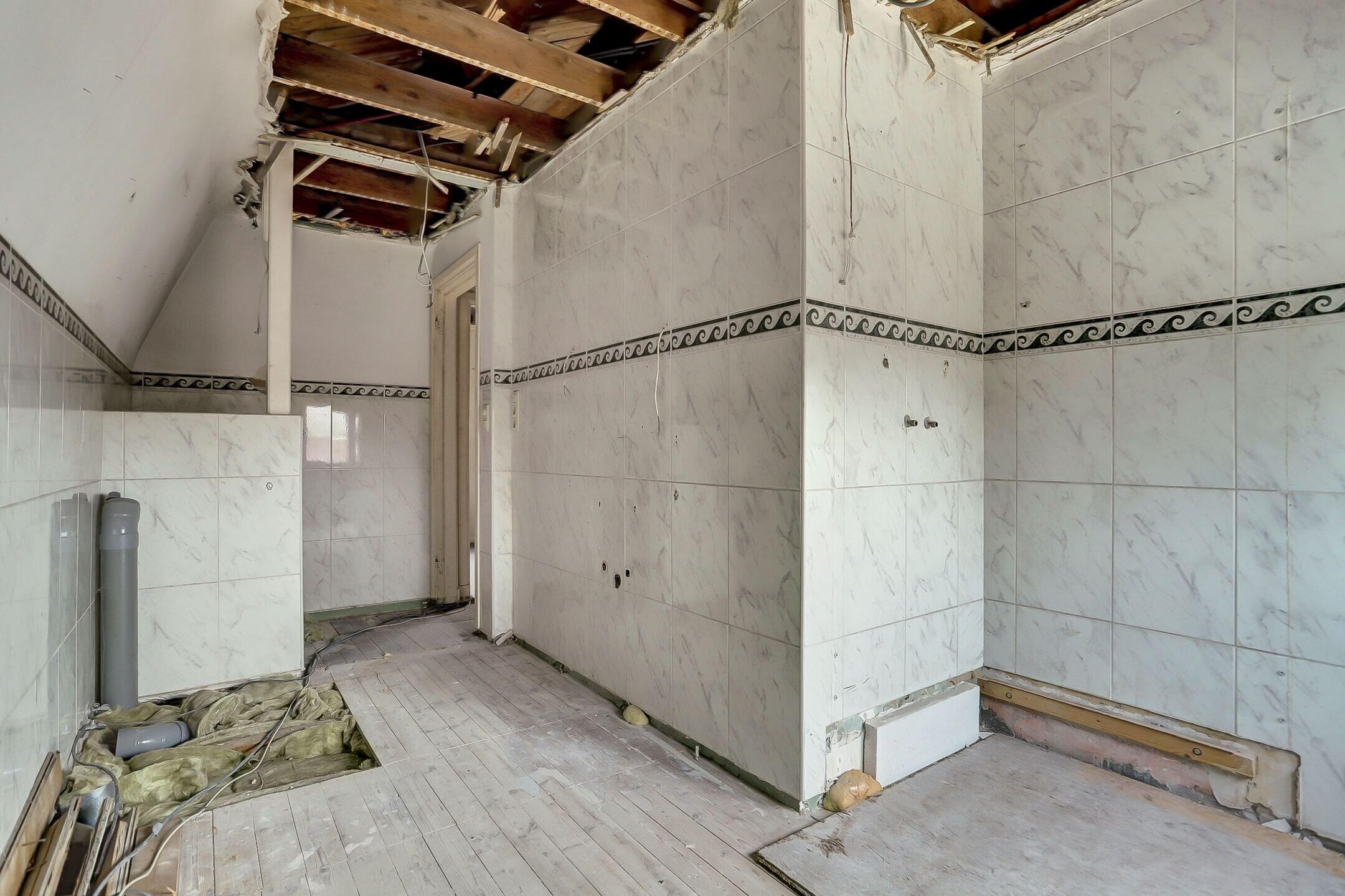 Grenzend aan de keuken bevindt zich een speelse, multifunctionele open ruimte die momenteel is ingericht als voormalige papegaaienkooi met hekwerk. Deze ruimte biedt volop mogelijkheden: denk aan een maatwerk kast, een speelhoek voor kinderen of een creatieve invulling die past bij jouw woonwensen.